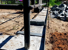 Ранее возведённый деревянный каркас залили бетоном. Выждав достаточное время для того, чтобы раствор окончательно схватился, мы принялись сваривать металлический периметр, внутрь которого и будет уложена брусчатка.