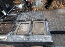 В ходе следующего этапа мы практически завершили работы с наземным покрытием: уложили всю территорию участка гранитной брусчаткой, а перед основаниями для новых памятников соорудили прямоугольные цветники, борта которых были выполнены из чёрного гранита.