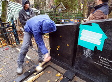 Когда мы вновь вернулись на могилу, место захоронения основательно засыпало листвой. К этому времени было изготовлено всё необходимо для того, чтобы преобразить мемориальный комплекс.
