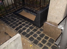 Взамен старой плиты устанавливаем небольшое надгробье из гранита перед массивной стелой, оформляем у его подножья цветник. Периметр получившейся композиции выкладываем гранитной брусчаткой. В результате у нас получилось бюджетная реконструкция половины места захоронения, второй частью клиент не позволил заниматься по личным причинам.